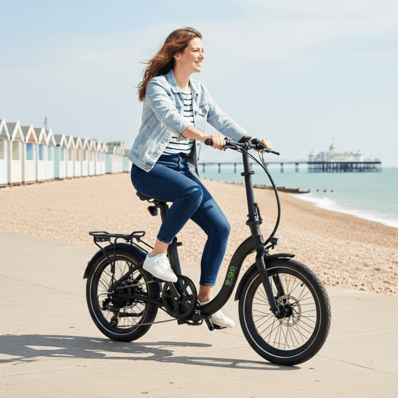The E-Go Step Folding Electric Bike 250W, a versatile and convenient e-bike designed for easy commuting and urban adventures. This stylish and practical bike features a step-through frame, making it perfect for riders who prefer a more accessible and comfortable riding position. Available in three attractive colours - Satin black, Duck Egg, and Metallic white - the E-Go Step is sure to turn heads wherever you go.