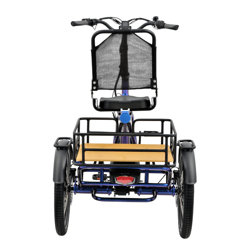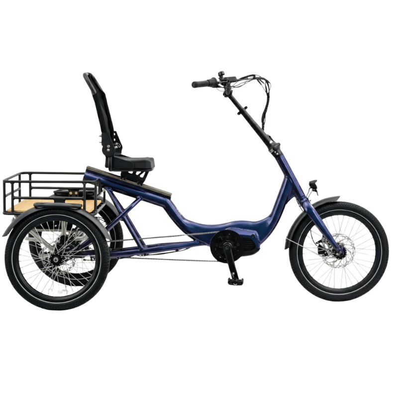 The semi-recumbent frame of the T4 prioritizes comfort and ergonomics, while adjustable handlebars and a seat designed for riders 5′–6′2″ ensure a customized fit. A spacious rear crate adds practicality, perfect for groceries, gear, or personal items. With thoughtful design elements like a low 76cm width for easy maneuvering and Shimano Nexus 7-speed internal gears for effortless pedaling, the T4 combines performance and comfort in one versatile package.
