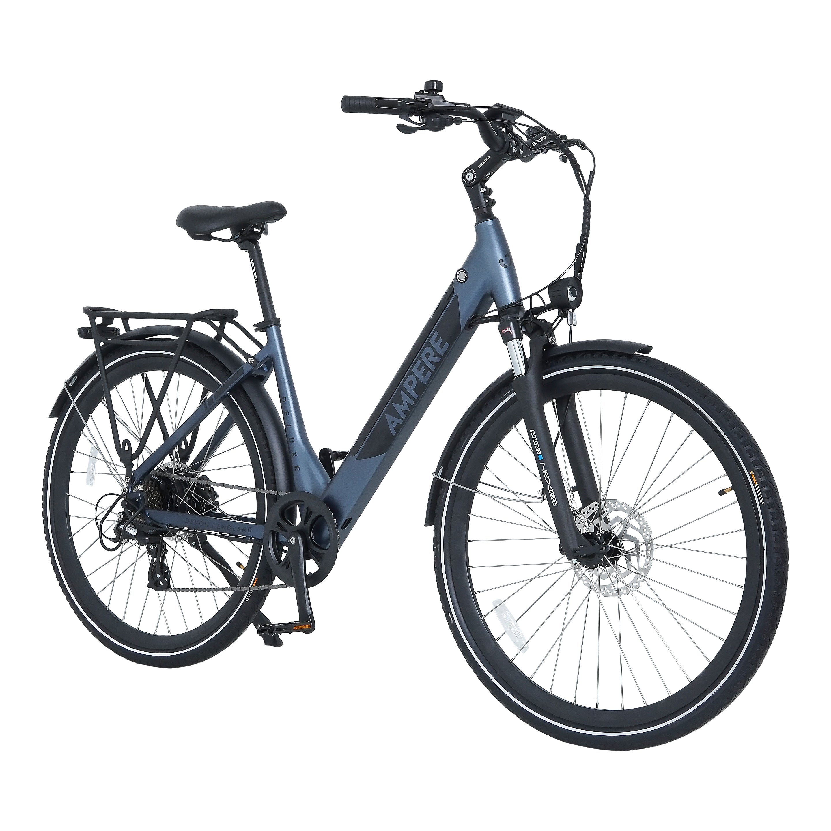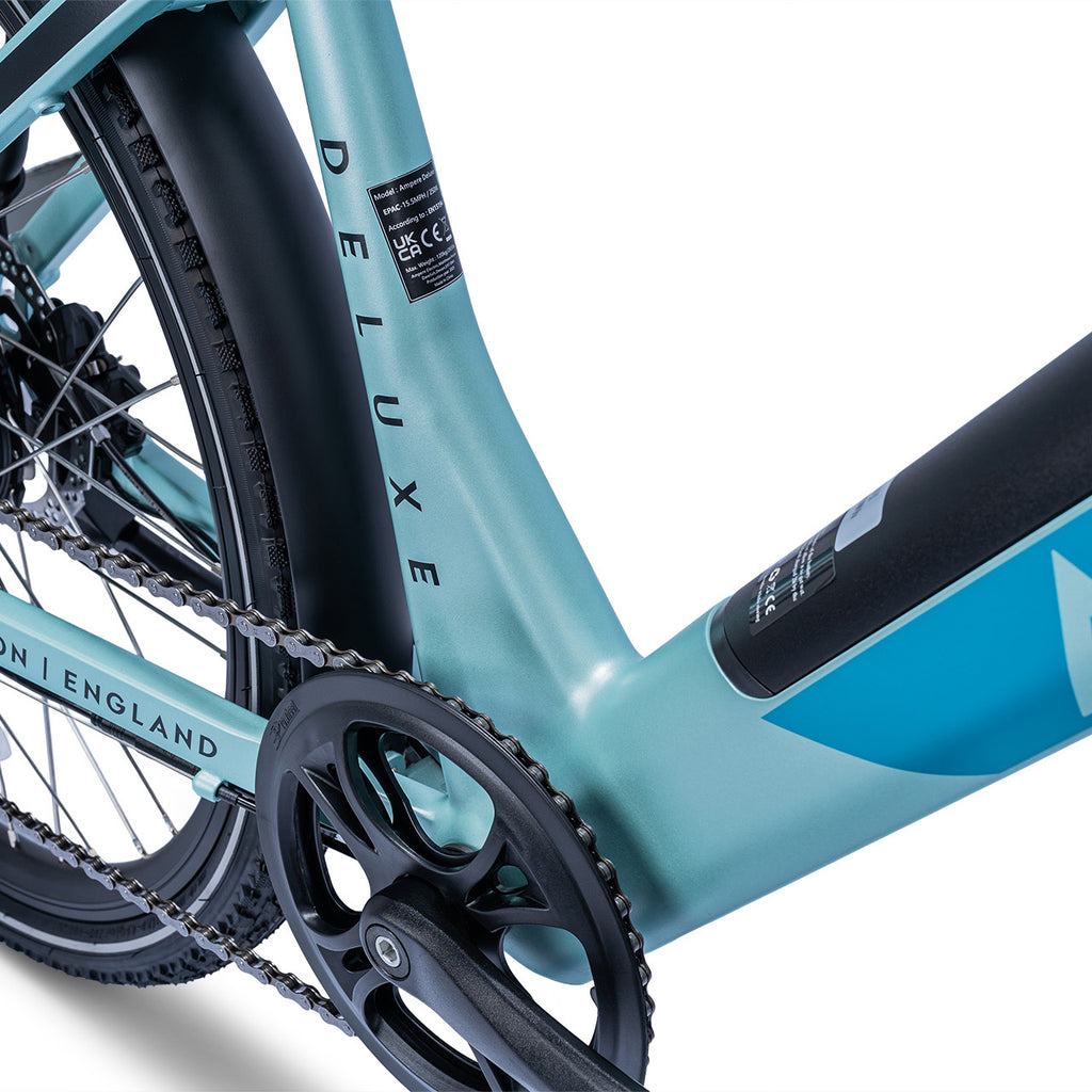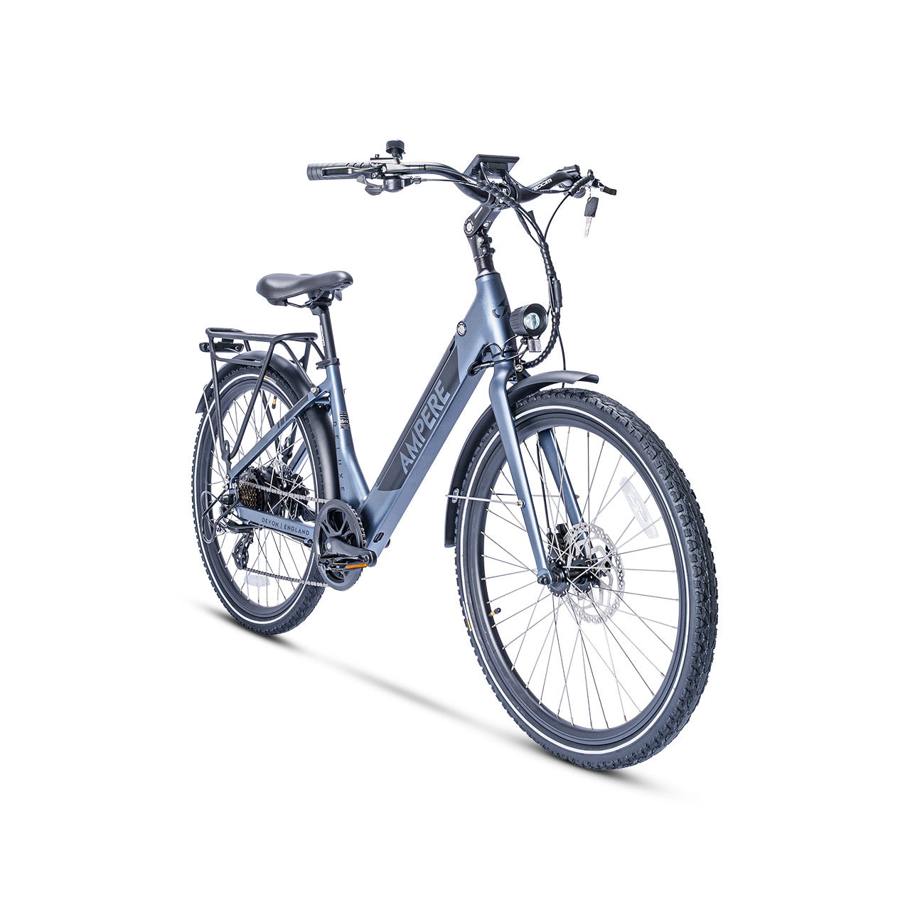 The Ampere Deluxe remains highly versatile, available in two frame sizes—16" for riders under 5'4" and 18" for those over 5'4"—making it the ideal choice for a wide range of riders. It also includes thoughtful extras such as a kickstand, pannier rack, mudguards, and integrated front and rear lights.