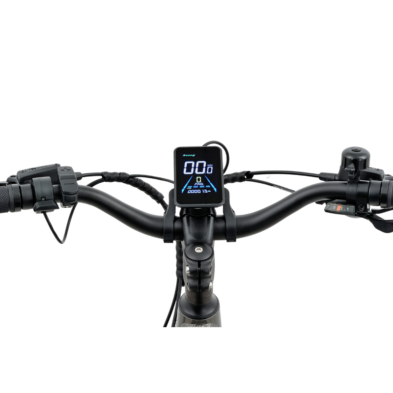 With front and rear lights included as standard, you’ll stay visible in low-light conditions. Full mudguards help keep you dry and clean, while the large, full-colour display offers easy access to speed, battery level, and other essential ride data.